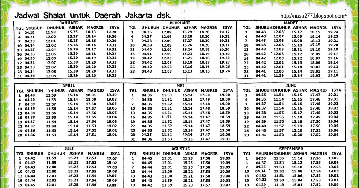 Contohnya, jadwal sholat hari ini di Jakarta adalah sebagai berikut:
