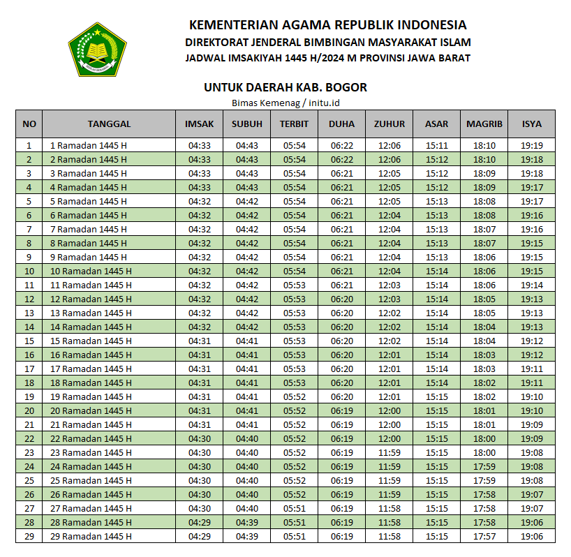 Mencari jadwal sholat hari ini di Bogor, Indonesia? Berikut adalah informasi terkini mengenai waktu sholat untuk wilayah tersebut. Waktu sholat Subuh berlangsung pada pukul 04:32, kemudian Dhuhur pada pukul 11:52, Ashar pada pukul 15:06, Maghrib pada pukul 17:57, dan Isya pada pukul 19:02. Informasi ini sangat penting bagi umat Islam yang ingin menjalankan ibadah secara tepat waktu.