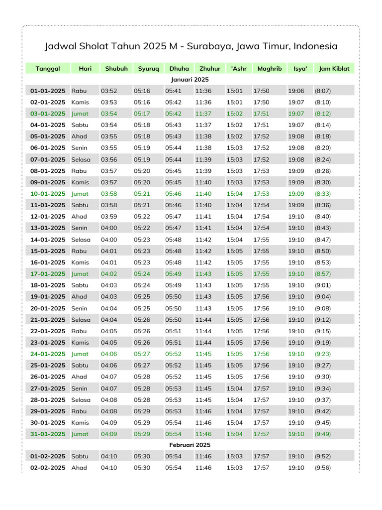 Berikut adalah daftar lengkap jadwal sholat di Jakarta untuk bulan September 2025: