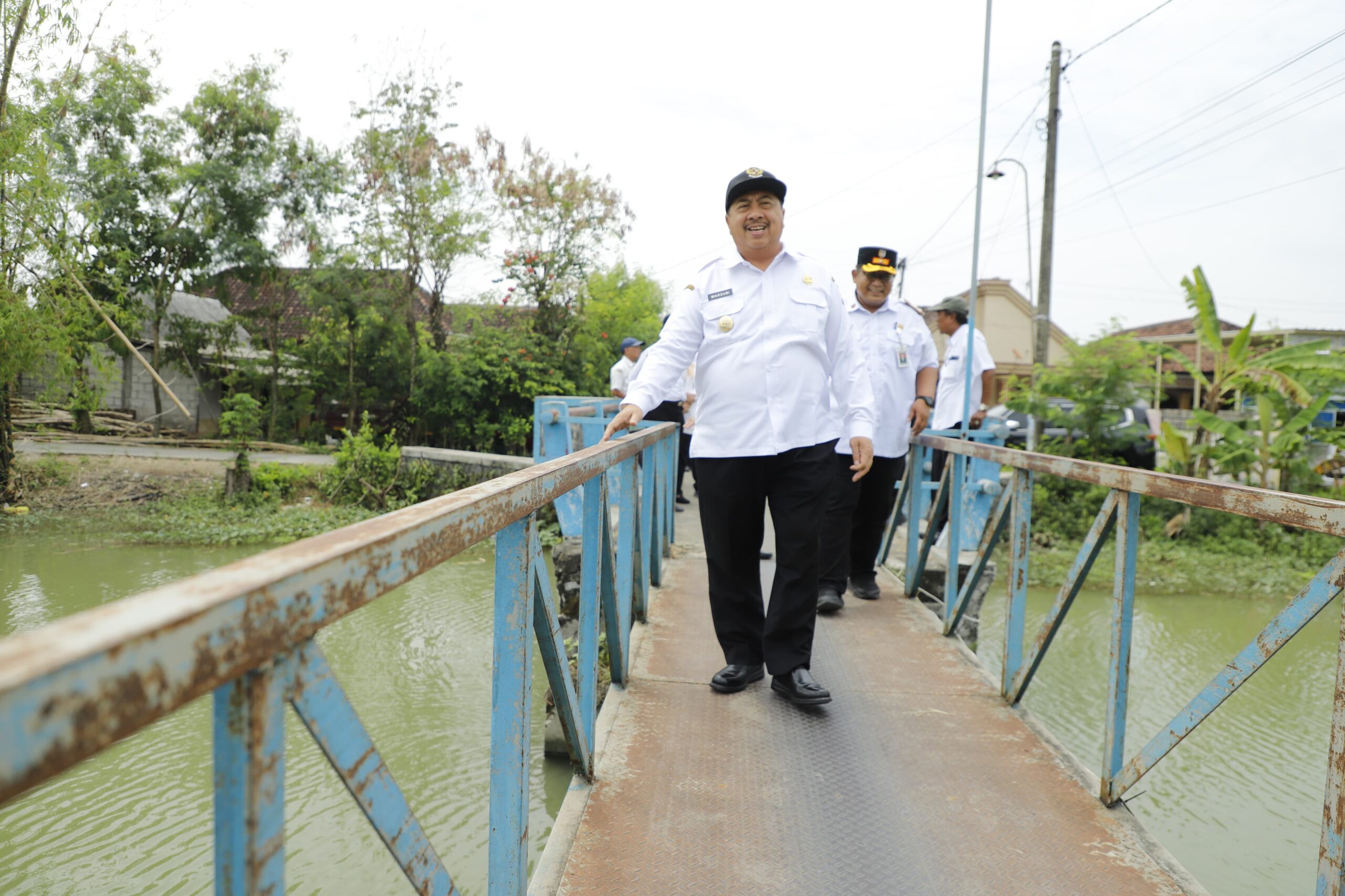 JOMBANG,Bangjo.co.id – Bupati Jombang Warsubi, S.H., M.Si., didampingi Asisten, kepala OPD terkait, Camat Kudu, dan Kepala Desa Kudubanjar meninjau jembatan Dusun Banjarejo di Desa Kudubanjar Kecamatan Kudu, Kabupaten Jombang, Rabu (31/12/2025).