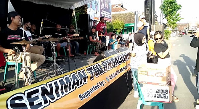 Penggalangan donasi tanggal 24 – 25 Januari 2026, melibatkan berbagai elemen masyarakat, termasuk para seniman, musisi, sederetan artis Tulungagung berpartisipasi, bernyanyi di fasilitasi panggung hiburan dan sound system secara gratis oleh Tim Basarta Rescue ketua Edi Siswoyo dan ketua Tulungagung Explorer, Nur Hasyim.
