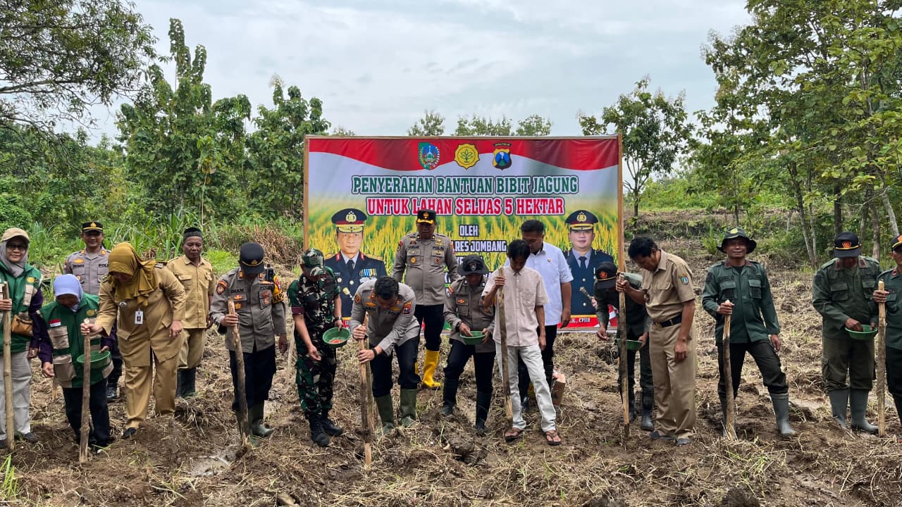 Dalam sambutannya, Kapolres Jombang menyampaikan apresiasi atas sinergi yang telah terjalin antara Forkopimcam, pemerintah desa, dan para petani dalam mendukung program swasembada pangan. Ia menegaskan bahwa penanaman jagung serentak dengan target 5 hektare di setiap desa merupakan langkah nyata dalam meningkatkan produksi pangan.