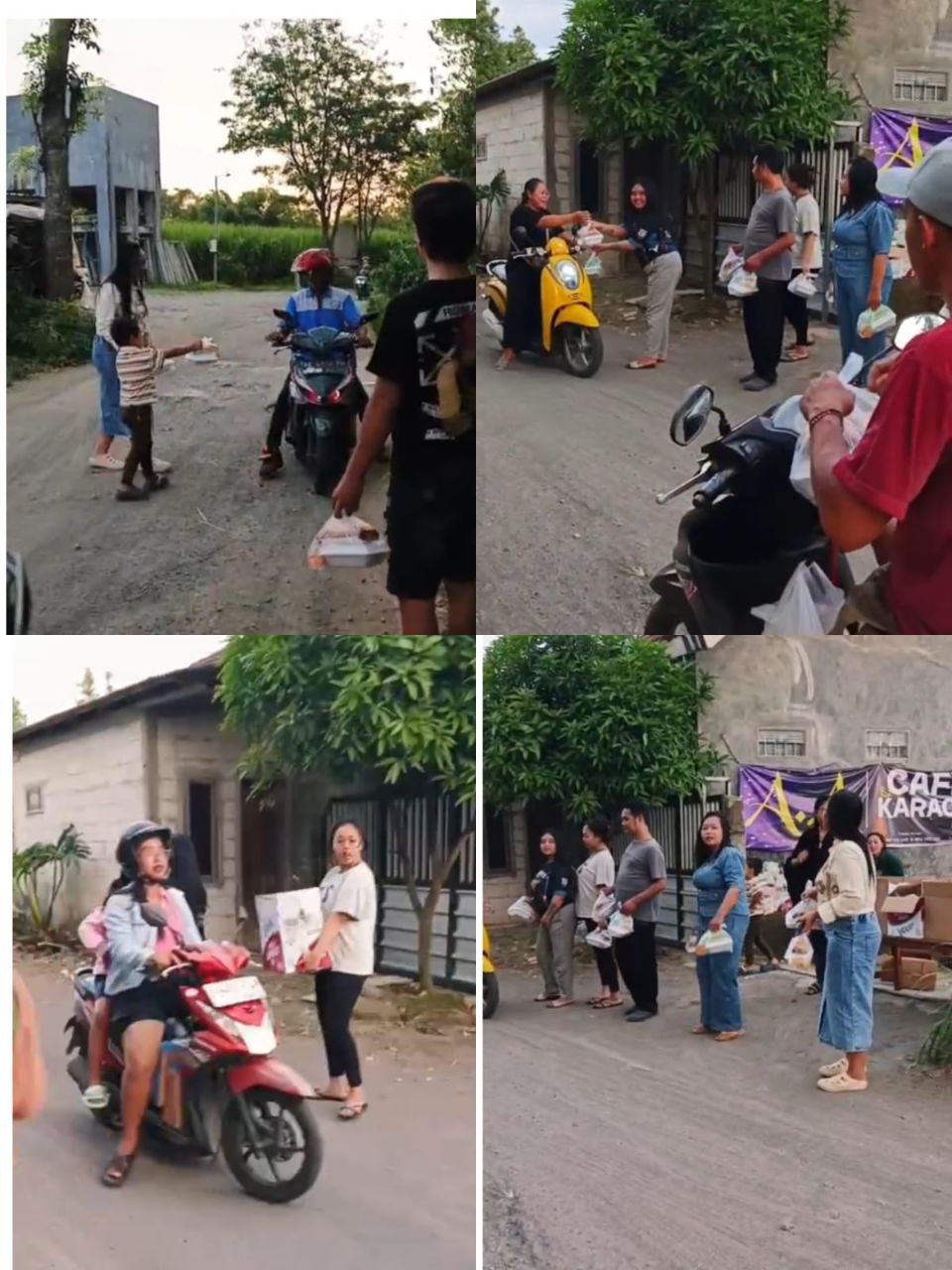 Kegiatan bagi-bagi takjil yang dilakukan oleh pemilik AA Cafe karaoke Mbak Lusi berlangsung meriah dan disambut dengan penuh kegembiraan oleh masyarakat sekitar. Banyak pengendara yang melintas rela berhenti dan mengantri demi mendapatkan takjil yang dibagikan.