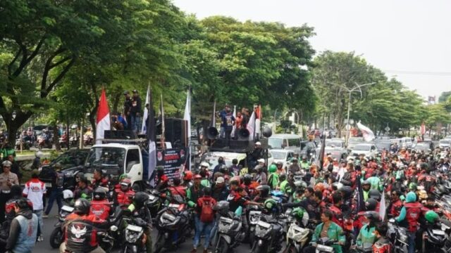 Surabaya, Bangjo.co.id Ribuan Driver Ojek Online baik roda dua dan roda empat menyuarakan berbagai tuntutan terhadap aplikator dan pemerintah, baik pusat maupun daerah. Arus lalu lintas di Bundaran Waru sempat tersendat karena massa memadati jalur utama, petugas kepolisian mengalihkan kendaraan massa aksi melalui jalur Frontage Ahmad Yani untuk menghindari kemacetan. Ribuan ojol […]